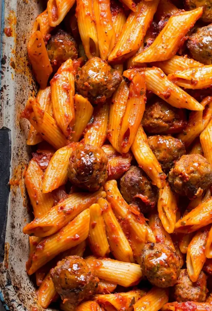 I know many of you enjoy baked pasta dishes. Although I didn’t bake this recipe, you can easily do so by sprinkling some cheese on top and baking it for 20 minutes. I prefer to enjoy it right away, with the juicy pasta, sauces, and meatballs mixed together.