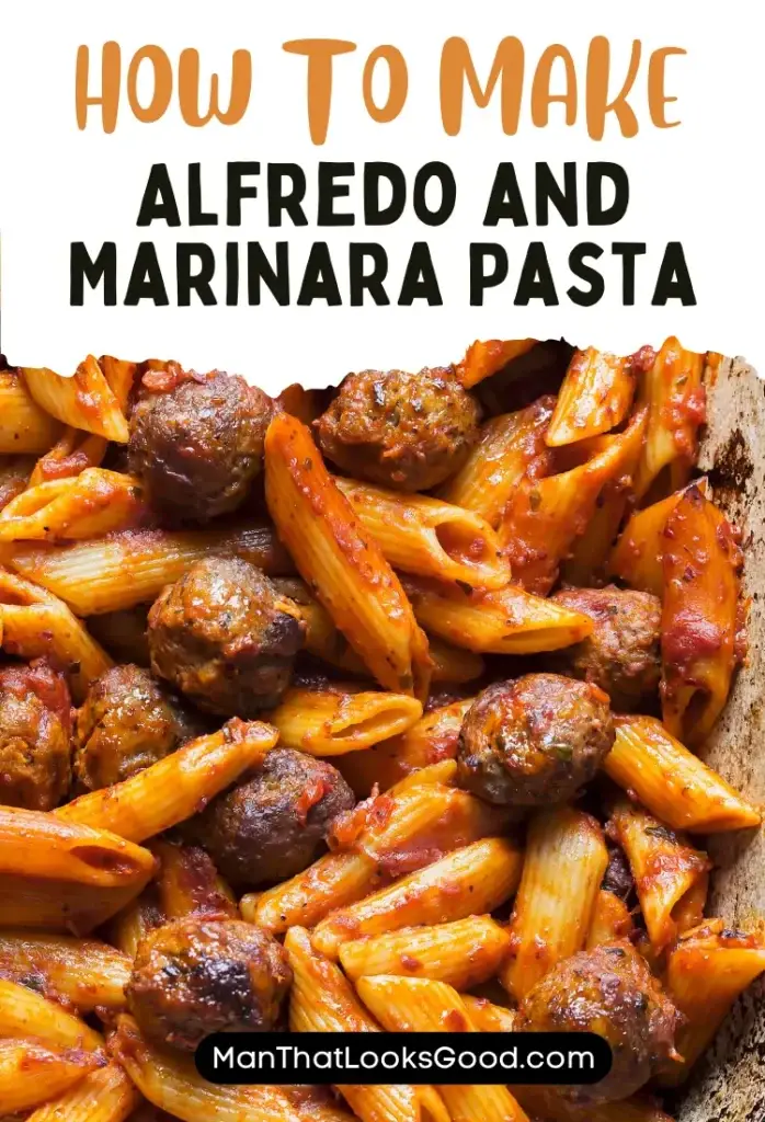 If you never enjoyed a mix of Alfredo and Marinara sauce with pasta in one dish, Well I think this is the right time. This Alfredo and Marinara Pasta contains pasta, (You can use any shape you want), mixed with two kinds of sauces. The Alfredo sauce is creamy white, and the marinara sauce is tomato-flavored. The dish tastes so delicious due to its creamy and tangy flavor, which you will have in every bite. Plus I add beef meatballs to make it perfect for me, This Alfredo and Marinara Pasta may look like classic pasta with meatballs, But not, it is much better with more flavors due to the mix of the ingredients used, Do not forget to add some seasoning as I Did.
