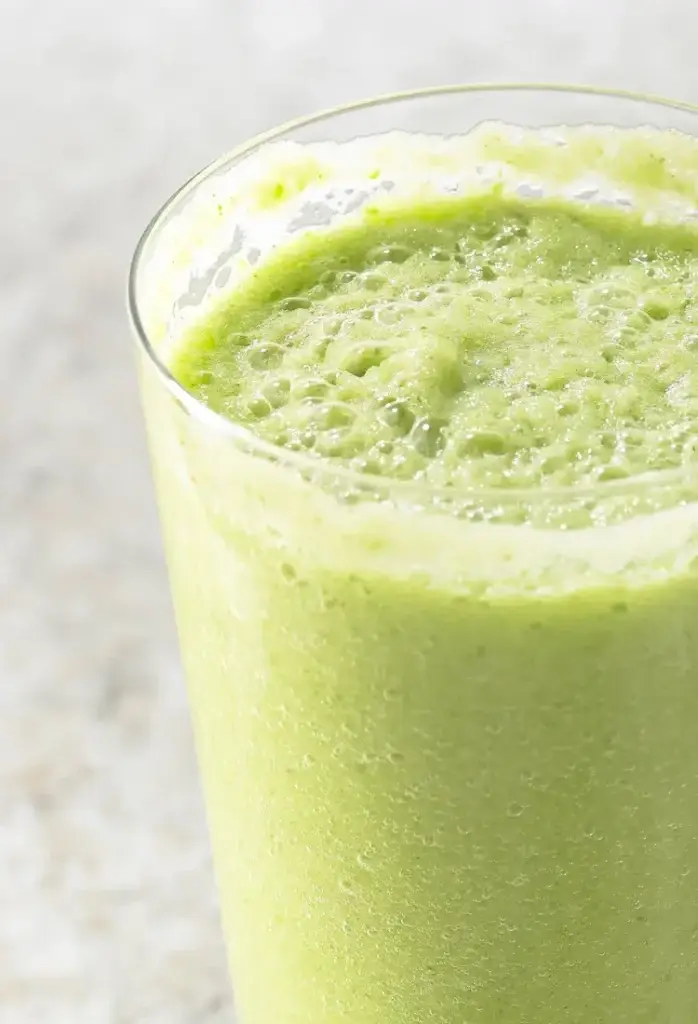 - Blend everything until it’s smooth and thick. The smoothie should look green and creamy. Enjoy.