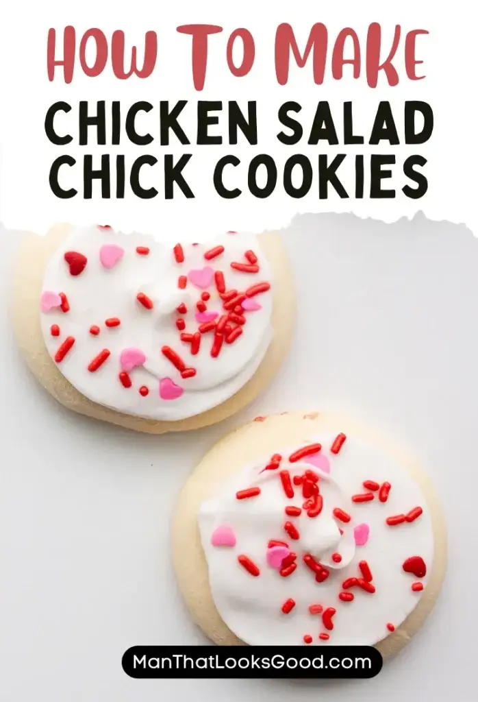 This copycat Chicken Salad Chick Cookie recipe is so easy to make. Just bake round cookies, top them with creamy frosting, and add some sprinkles. The taste is truly delicious and perfect for a cozy evening with friends or family. These cookies pair beautifully with a glass of iced raspberry leaf tea.