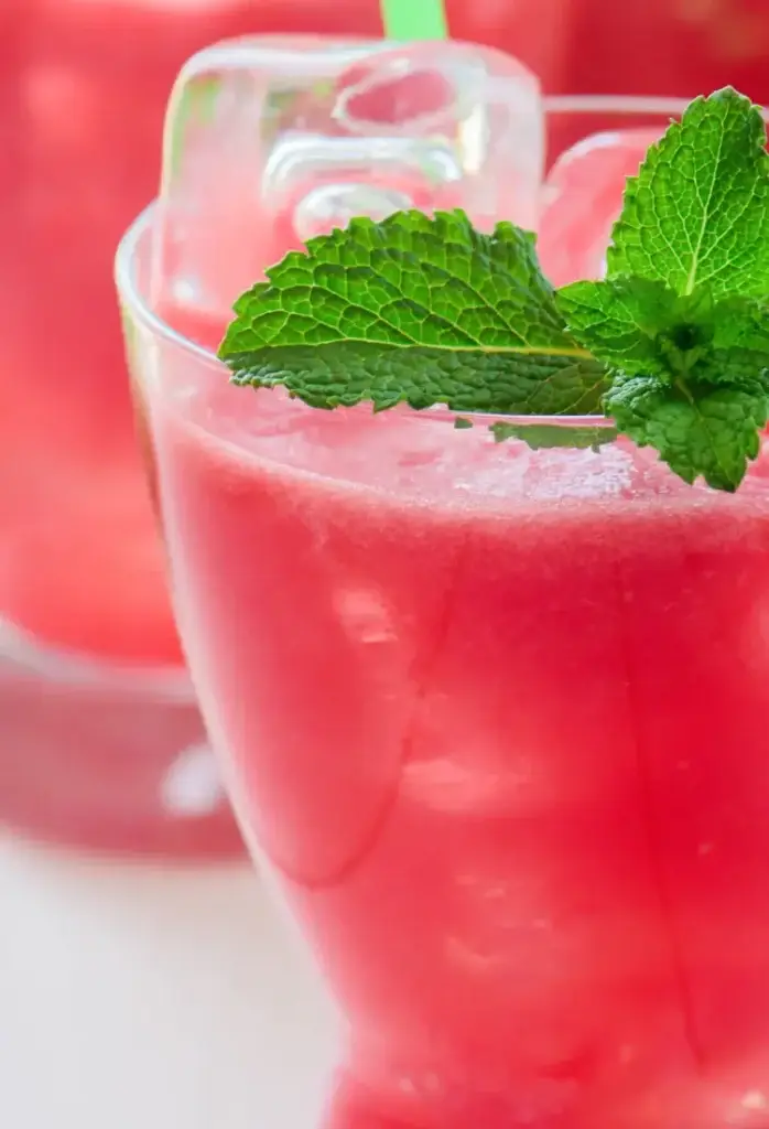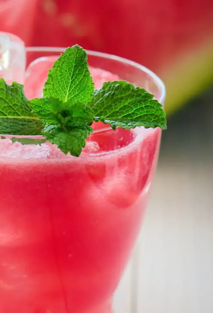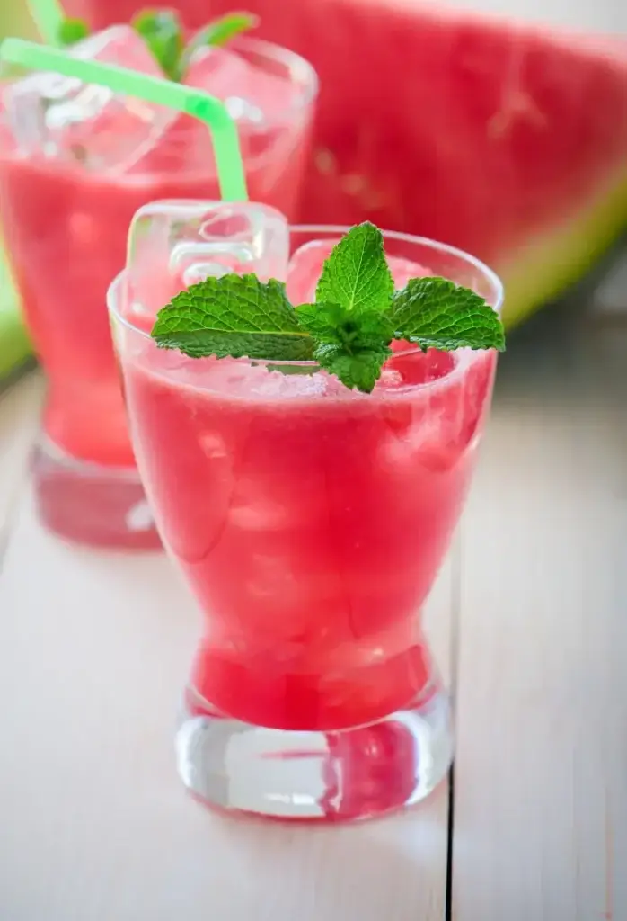 - Pour the watermelon drink into small glasses. If you want, you can add a small piece of mint leaf on top to make it look nice. Enjoy.